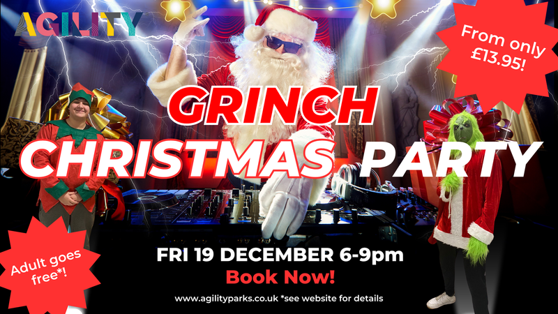 Celebrate Christmas Agility style! Three Christmas events you don't want to miss over the feastive season, Grinch Ninja Disco, Cheeky Elves fancy dress party and New Years Eve Extravaganza, Book Now!
